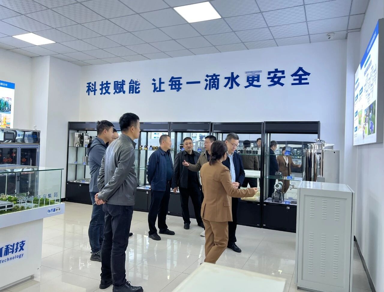 座談結束后,霍保東董事長一行前往華浦環保寶雞生產基地實地考察。在生產車間,考察團詳細查看企業自主研發的核心產品,包括一體化凈水設備、一體化污水設備、消毒設備、膜處理設備、農村資源生態凈化罐及特種水處理設備等。其中,PY-RPF 一體化凈水設備與 HP-RO 反滲透設備因技術領先、性能穩定,已獲中國水利部推薦產品認證,得到考察團高度認可。